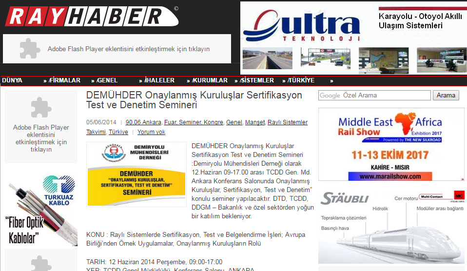 KONU : Raylı Sistemlerde Sertifikasyon, Test ve Belgelendirme İşleri; Avrupa Birliği’nden Örnek Uygulamalar, Onaylanmış Kuruluşların Rolü